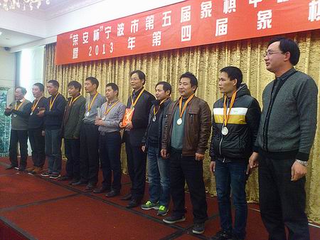 宁波市象棋甲级联赛代表了宁波现在中国象棋的最高水平,,,,,宁波的5位中国象棋国家巨匠所有参赛。。。。。。。联赛赛程一年,,,,,接纳单循环赛制,,,,,分四场次举行,,,,,本场角逐是整个联赛赛程的最后一场角逐。。。。。。。经由8个月的征战,,,,,最终鄞州、慈溪、北仑获得前三名;;;;;;;角逐竣事后举行了终结仪式并举行了颁奖。。。。。。。