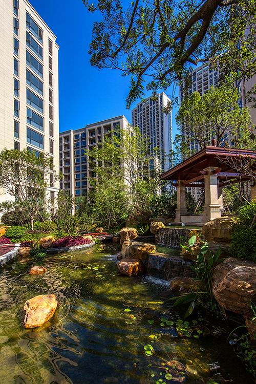 质量是景观品质的基础,,,,,而效果是景观品质的要害。。。。。。。。通过景观绿化的营造,,,,,项钠獒成将月园打造成高尚高雅、细腻唯美的花园式住宅。。。。。。。。在此历程中,,,,,项目部通过与设计部及施工单位的充分相同,,,,,一直对景观计划举行调解、优化。。。。。。。。使用地形的堆叠、空间的梳理,,,,,战胜园地面积狭窄等倒运因素,,,,,将景墙、亭子、水系、树木、草坪等元素协调地组织于一起,,,,,形成条理富厚、恬静高雅的住宅景观。。。。。。。。